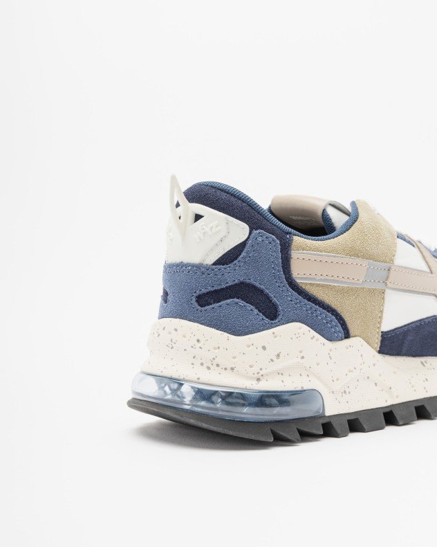 Blue trainers in technical fabric with suede accents and reflective details. Rubber sole and W6YZ logo on the side.