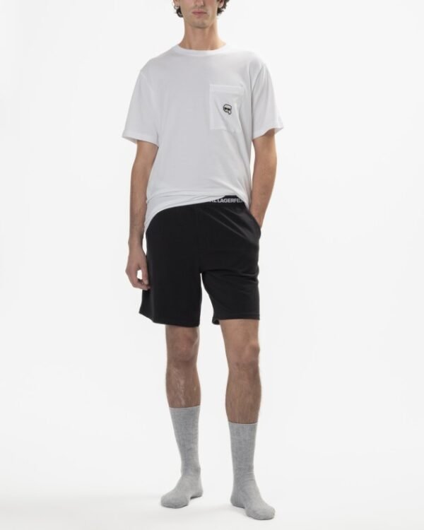 Crafted from organic cotton, this Karl Lagerfeld pajama set is a sleepwear staple. A ikonik patch on the chest and branding around waistband complete the design.