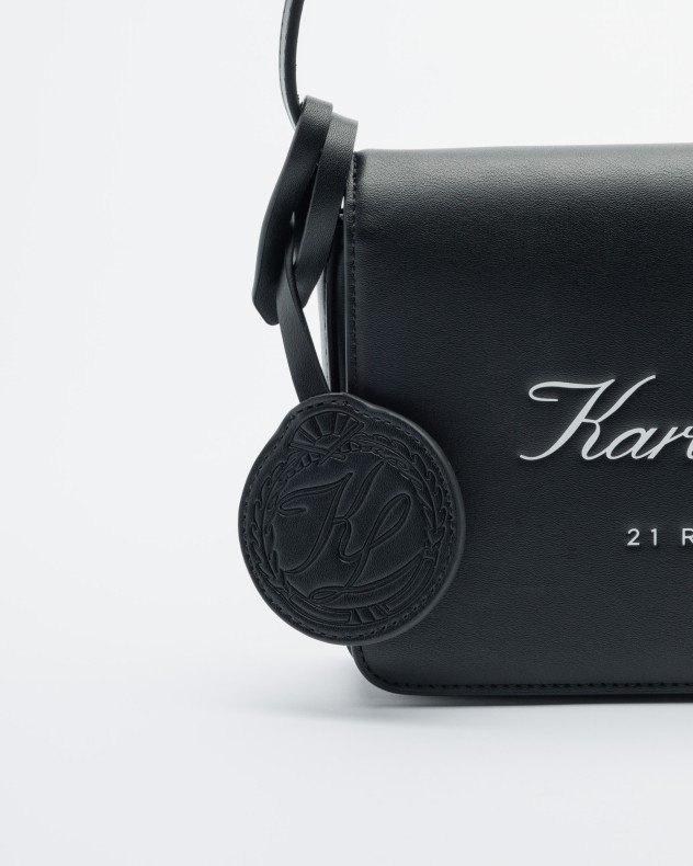 A minimalist and sophisticated addition to your accessories collection for the season. This compact Karl Lagerfeld shoulder bag is crafted from soft faux leather, combining clean lines with the iconic Karl Lagerfeld HQ address in Paris.