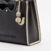 Black Karl bag with contrasting trim and embossed logo on the front. Decorated with Ikonik Choupette artwork and pendant.