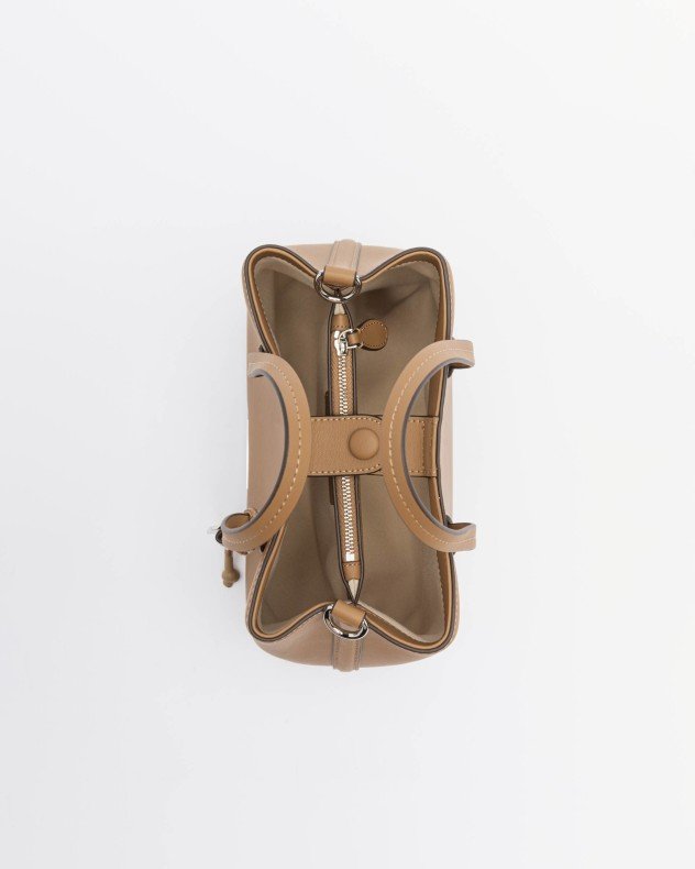 Black tote bag in smooth faux leather with drawstring and Ikonik Karl metal pendant. Silver plate with engraved logo on the front.