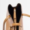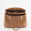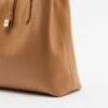 Camel-colored bag made of soft leather with double handles. Decorative padlock detail engraved with the Karl Autograph logo.