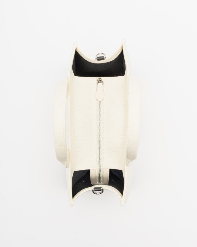 Karl Lagerfeld white and black tote bag in canvas fabric. Double handle and printed address detail: Karl Lagerfeld 21 Rue St-Guillaume.