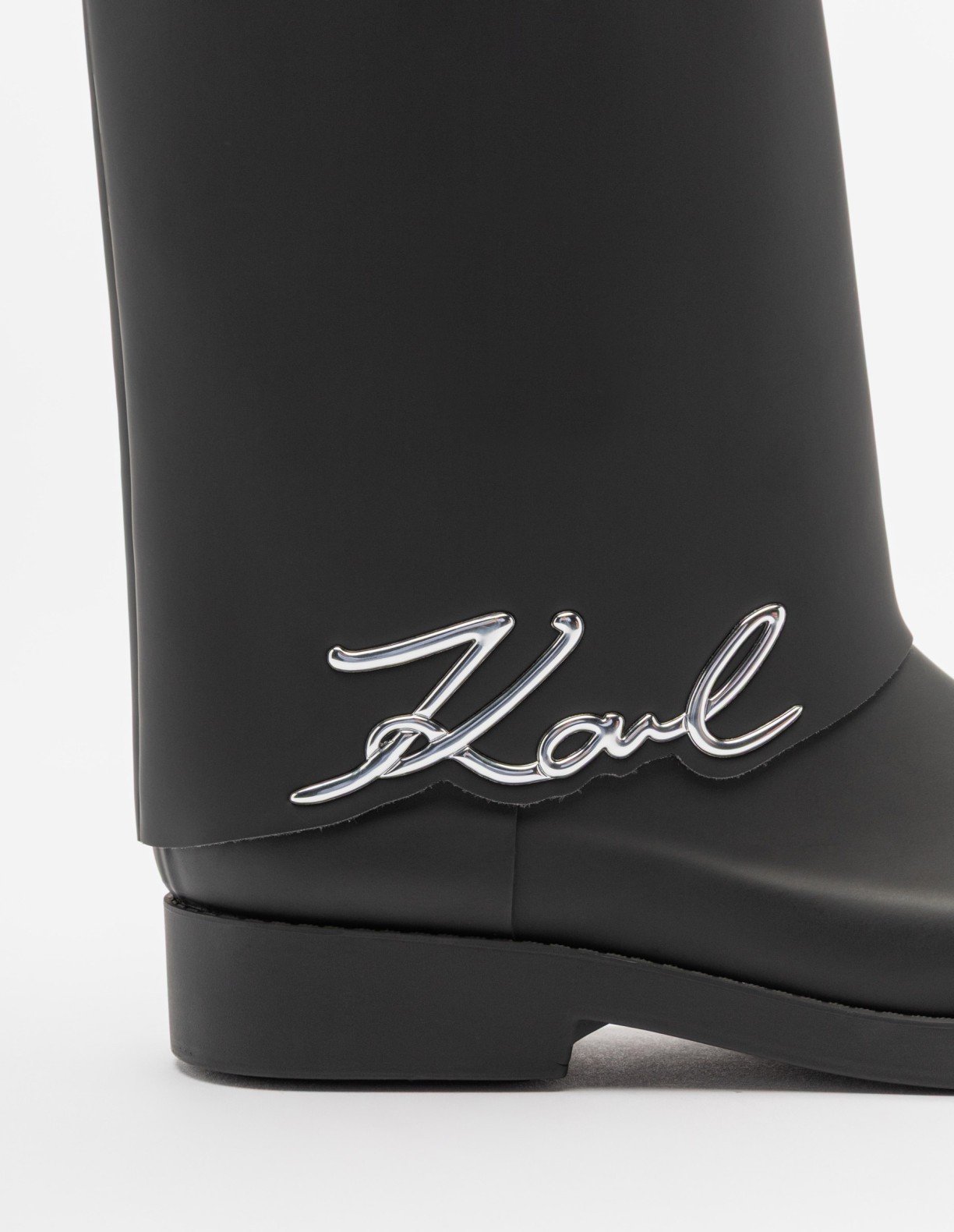 Karl Lagerfeld women’s wellies with metallic signature on the side.