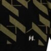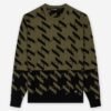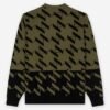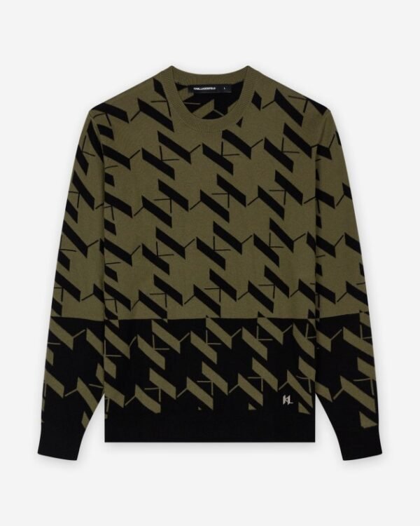 Green Karl Lagerfeld pullover with monogram pattern. Metallic logo detail at the hem.