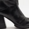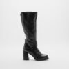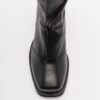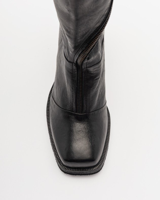 Black boots in premium leather with a diagonal zipper detail. High heel and square toe.