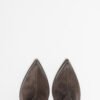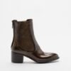 Women’s green ankle boots with a medium heel, round toe, and back closure.
