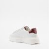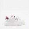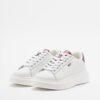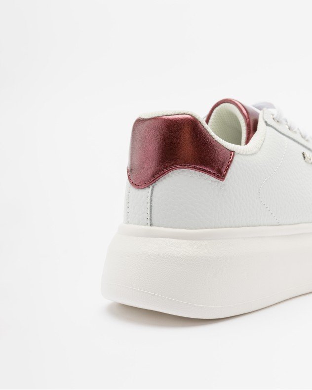 White sneakers in grainy leather with red details. Metallic Liu-Jo logo on the side.