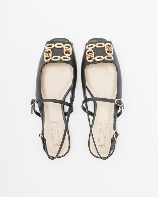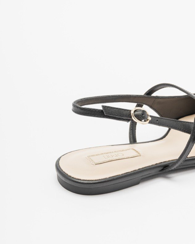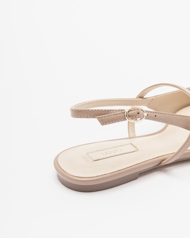 Flat sandals in nude leather with straps at the heel and instep. Exclusive Liu-Jo gold chain effect appliqué.