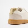 Low-top sneakers in beige leather with patent details and suede inserts. Gold heel and metallic Liu-Jo logo on the side.
