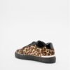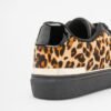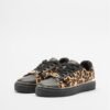 Black sneakers lined with fur featuring a tiger print. Gold details and LJ monogram appliqué on the front.