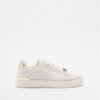 White sneakers in smooth leather with gold details. Metallic appliqué on the front with the Liu Jo logo.