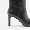 Black knee-high boots with a square toe and side zip fastening. Metallic detail on the side with the Liu Jo logo.