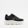 Black sneakers with a chunky, high sole, crafted from a mix of materials. Gold Liu-Jo logo on the side