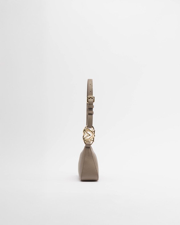 Love Moschino black shoulder bag in a baguette format, crafted from cracked leather. Gold metallic logo on the front.