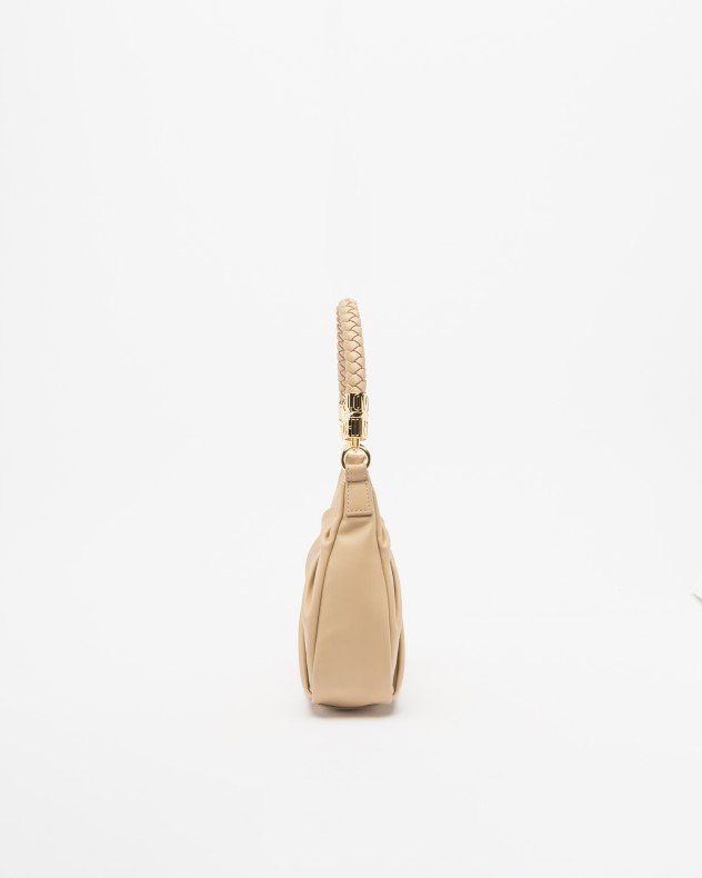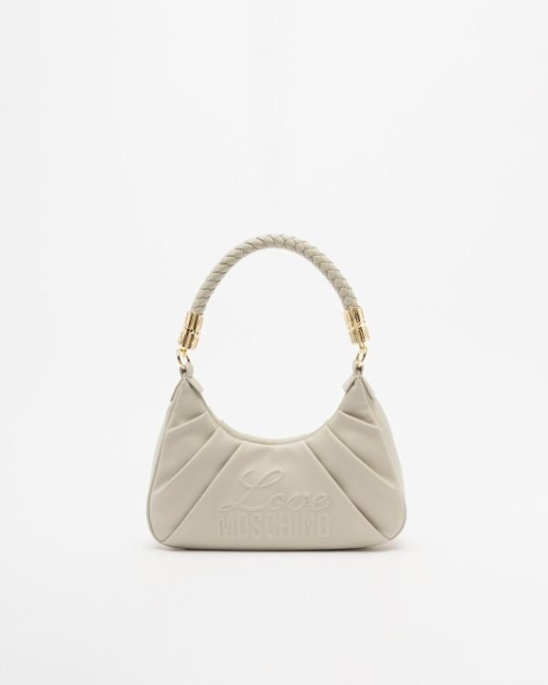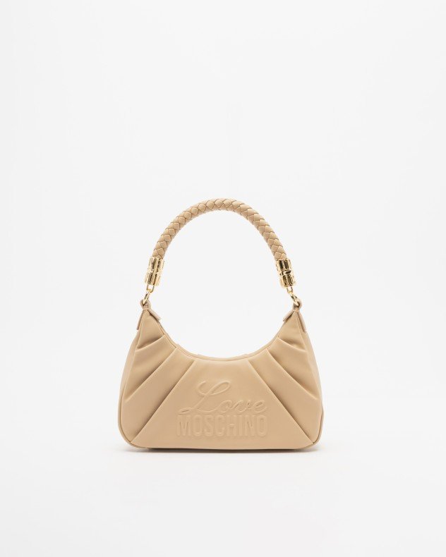 Love Moschino taupe hobo bag with metallic details and embossed logo.