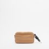 Beige Love Moschino crossbody bag made of quilted polyester fabric. Heart-shaped metal plate detail with Love Moschino lettering.