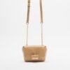 Beige Love Moschino bag in soft faux leather with a decorative mini wallet on the front. Adjustable long strap with gold chain.