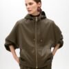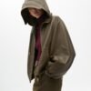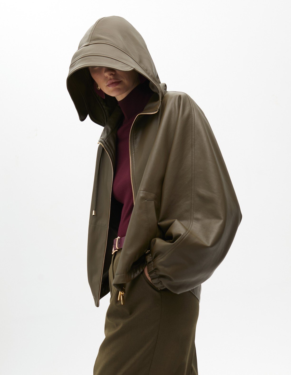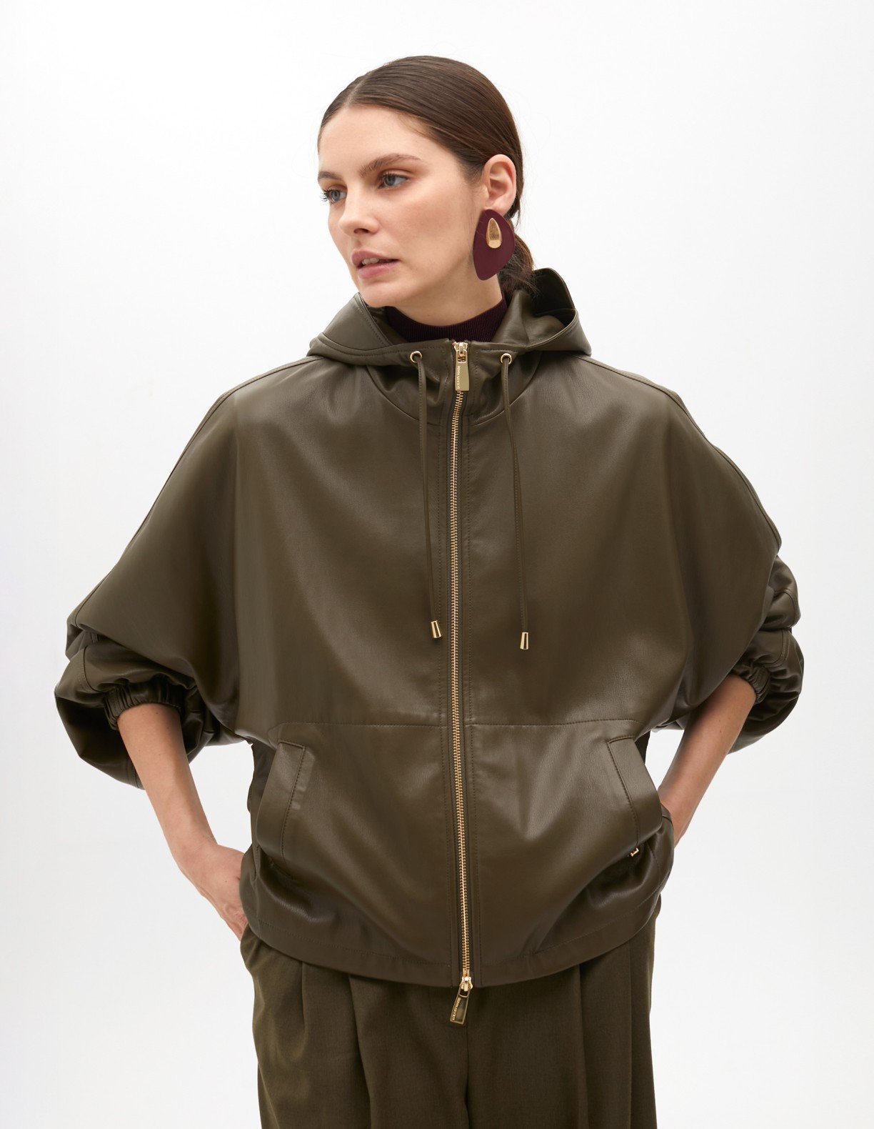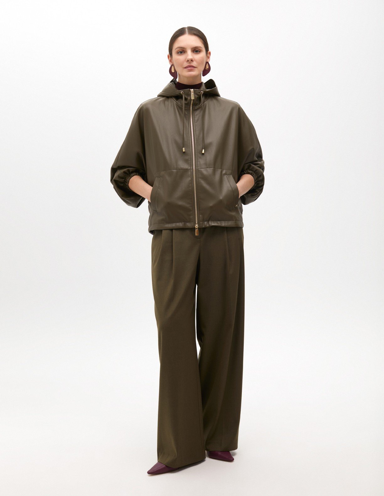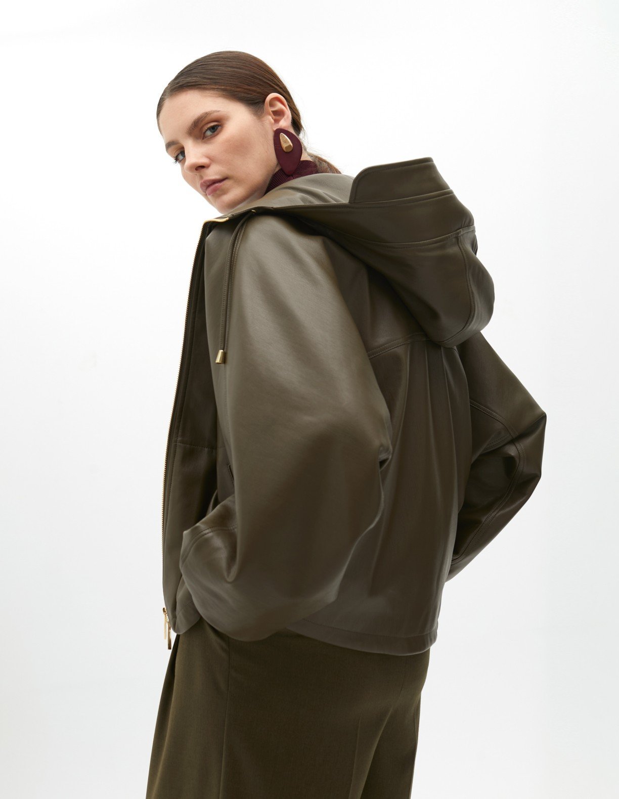 Green faux fur coat with a relaxed fit. Designed with an adjustable hood, zipper closure, and side pockets.