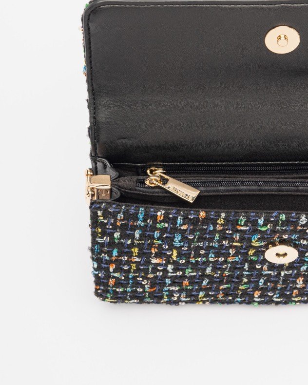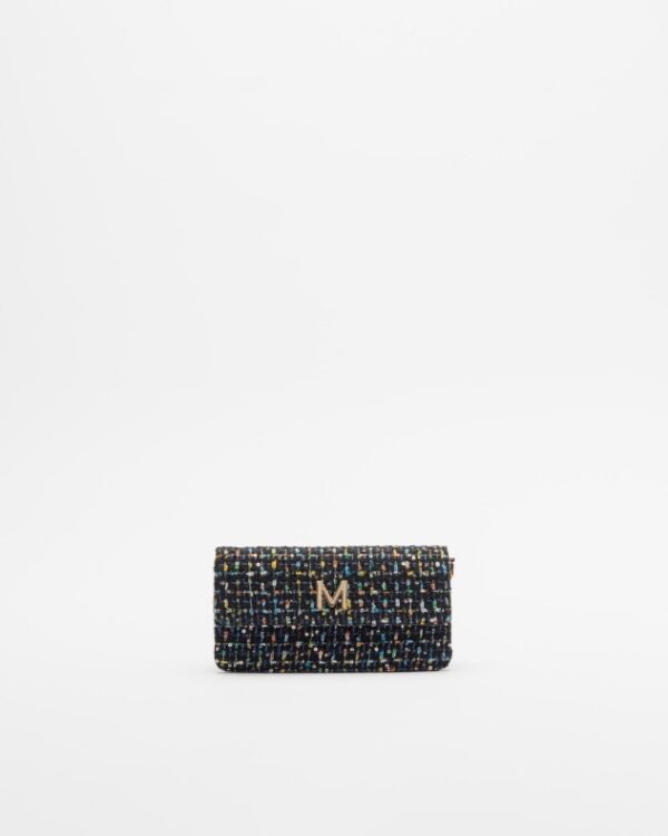 Maite by Lola crossbody bag in colorful fabric with sequin detail and metallic “M” on the front.