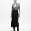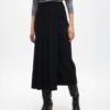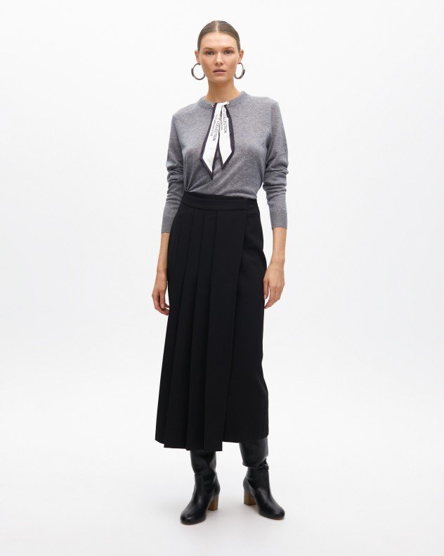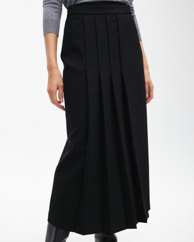 Black midi skirt in flowing fabric with pleats. Side zipper closure.