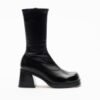 Miista boot in black leather with elongated silhouette and square toe.