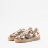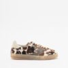 Low-top sneakers covered in animal-print fur. Contrasting details and an engraved Moa Concept logo on the heel.