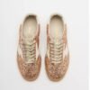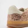 Women’s flat sneakers covered in champagne-colored sequins. White leather details and logo