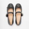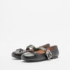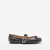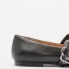 Black leather ballet flats with a bow at the front. Strap across the instep with an exclusive Love Moschino buckle.