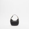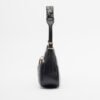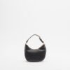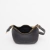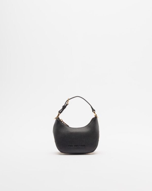 Small black bag in synthetic leather with a grained effect. Gold metallic logo on the bottom.