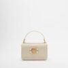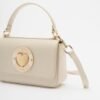 White Love Moschino bag in synthetic leather with a gold-tone Love Moschino metal plaque detail.