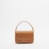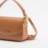 Camel Love Moschino handbag in synthetic leather with a grained effect. Gold Love Moschino lettering on the front and logo detail on the side.