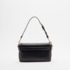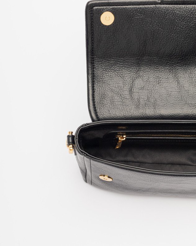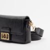 Black leather-effect bag by Love Moschino. Removable shoulder strap and gold logo plaque on the front.