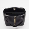 Black faux leather bag with gold details. Front strap and pendant with “Love Moschino” lettering.