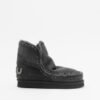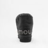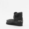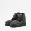Black suede ankle boots with crochet stitching and genuine fur lining. Shiny 3D logo on the heel.