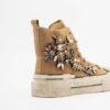 Nan-Ku sneakers in camel suede with shiny appliqués on the sides and toe. Platform sole with a worn effect.