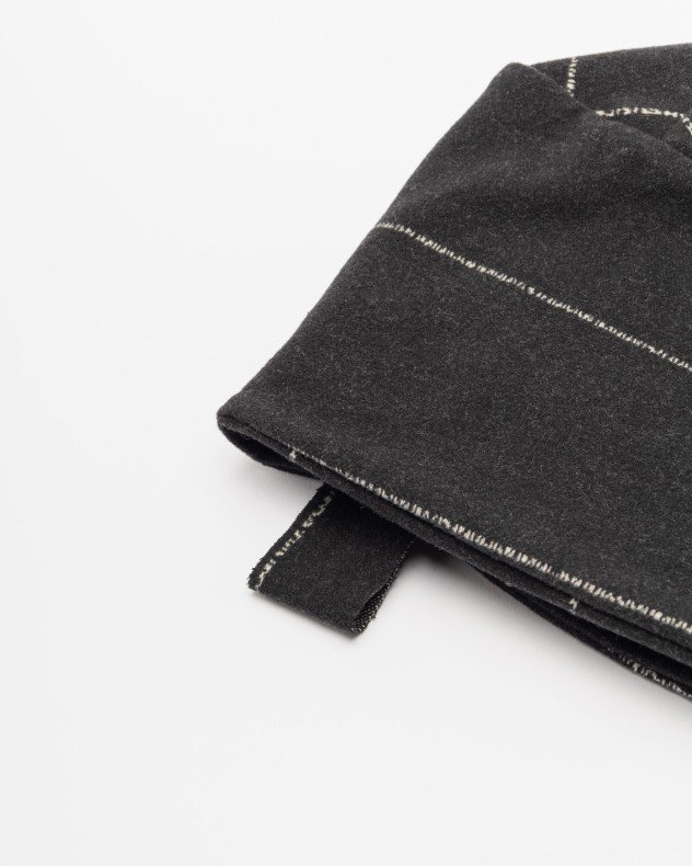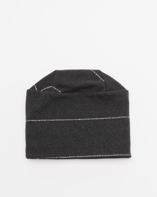 Black hat in a mix of fabrics with a soft touch and contrasting lines.