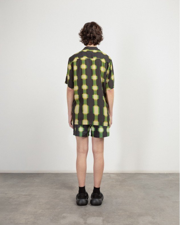 OAS green shirt made from viscose with a distorted check pattern. Relaxed fit with resort collar.