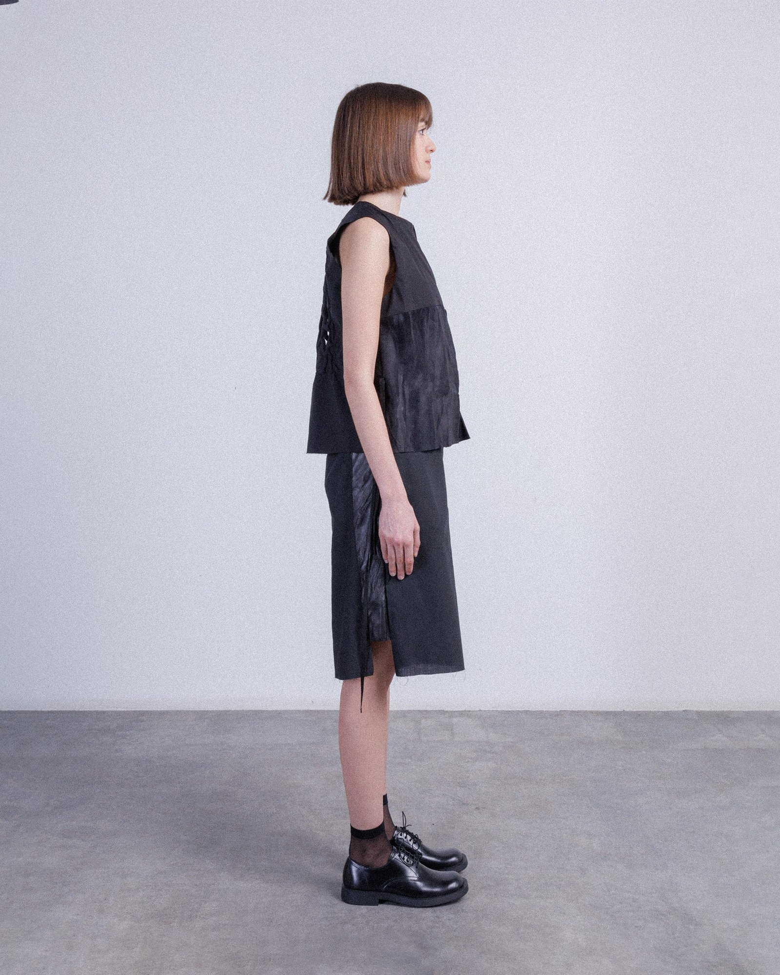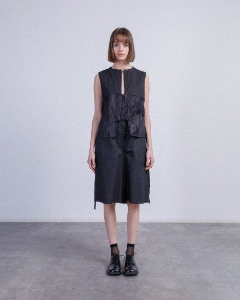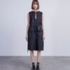 Black Papucei capri pants with leather details. They feature side and back pockets.