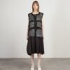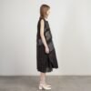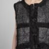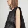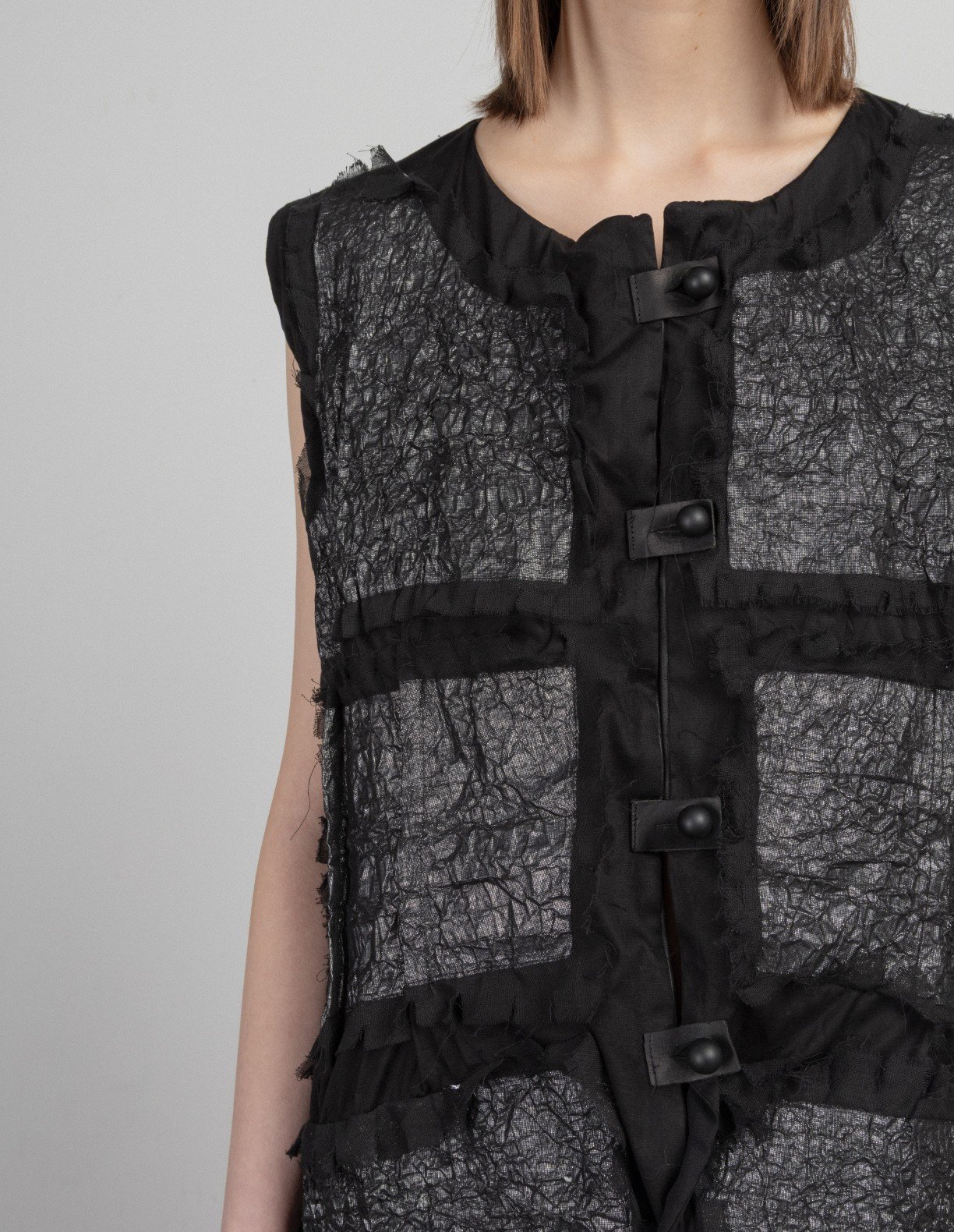 Black vest combined with metallic decoration and a crinkled effect. Side pockets and button closure.