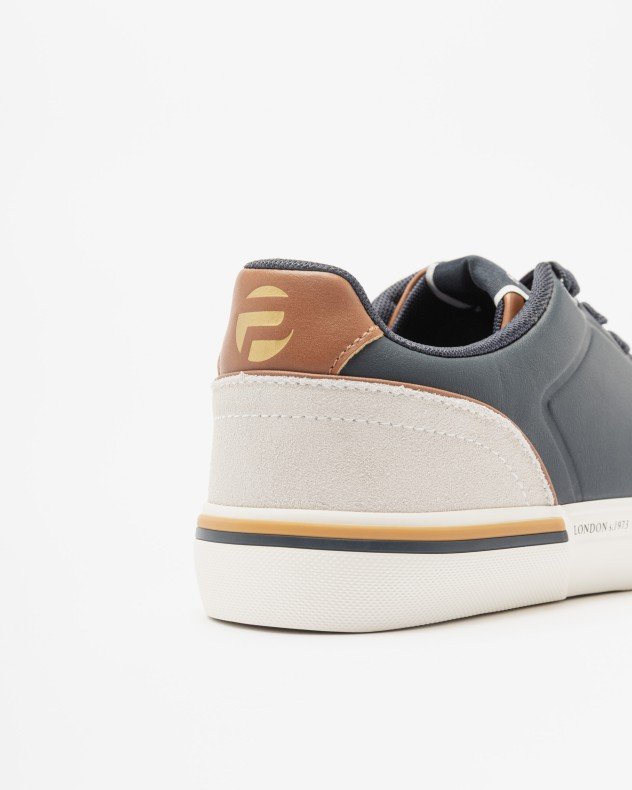 Low sneakers in smooth white leather with suede overlay on the heel and contrasting details. Pepe Jeans logo printed on the side.