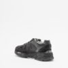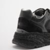 Black sneakers made from a mix of materials. Exclusive shiny sole and fur detailing on the sides.