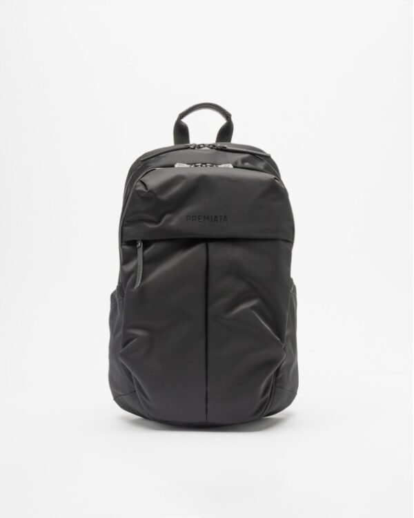 Premiata black backpack with multiple pockets and logo details.