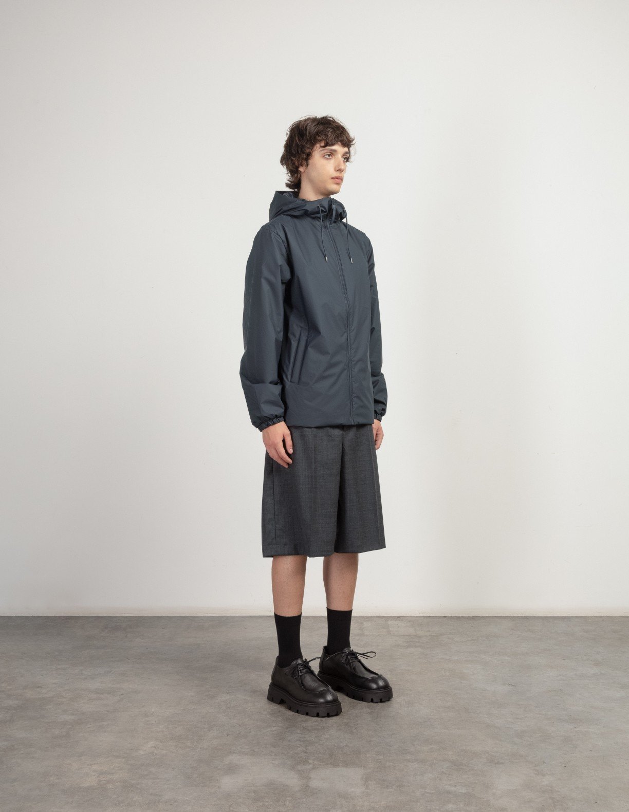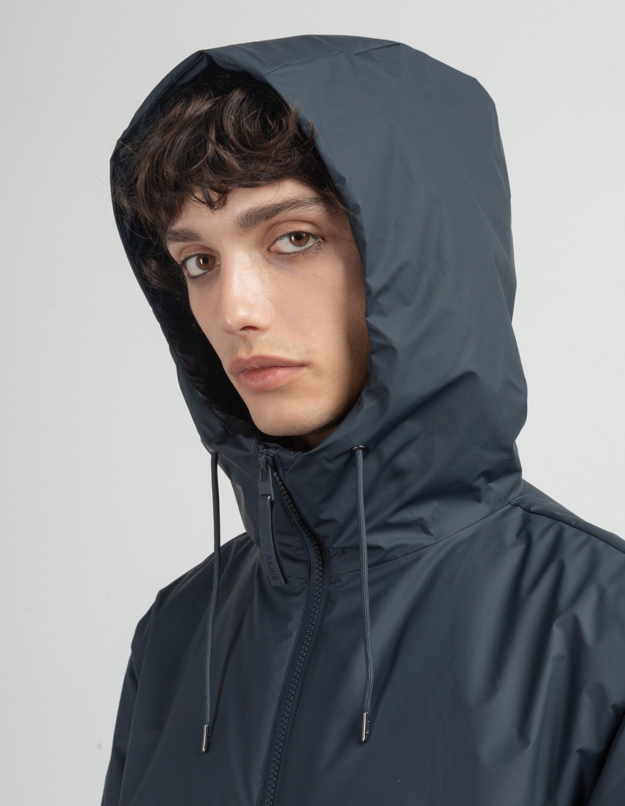 RAINS patch on left sleeve.