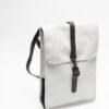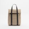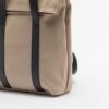 Waterproof beige backpack with a simple design and a functional pouch option. Foldable top opening and TPU strap details with top handles.