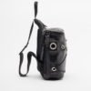 Green bag made of coated technical polyester. The design features a front pocket, exclusive buckles, and logo-embossed fabric trim.