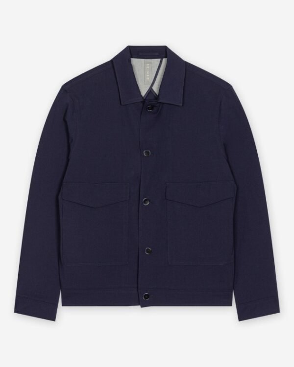 Blue mens shirt jacket with two front pockets and a classic collar. Features Seinse label on the left cuff.