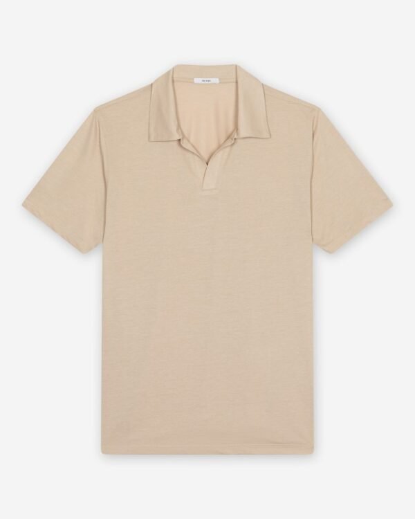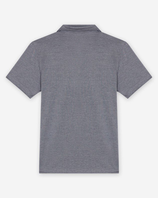 Men’s grey polo shirt in a cotton blend, with a relaxed collar and side slits at the hem.