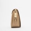 Taupe Byblos crossbody bag made of grainy faux leather. Featuring the Byblos logo and gold accents.