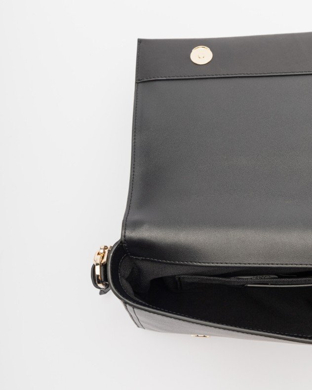 Karl Lagerfeld black shoulder bag in genuine leather with gold metal pin detail.